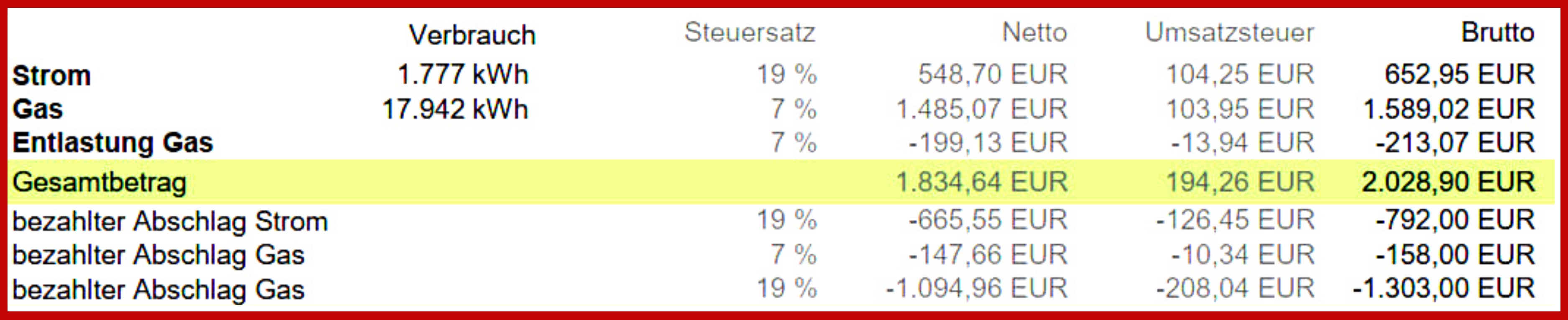 Für ein leichteres Verständnis der Rechnung haben wir für Sie die wichtigsten Bestandteile einmal erklärt.